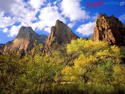 Puzzle Chmurki, Góry, Jesień, Drzewa