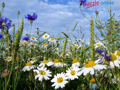 Puzzle Chmurki, Łąka, Kwiatki, Niebo
