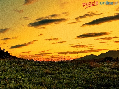 Puzzle Chmurki, Łąka, Zachód Słońca, Niebo