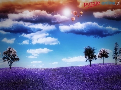 Puzzle Chmury, Fioletowa, Łąka, Balony