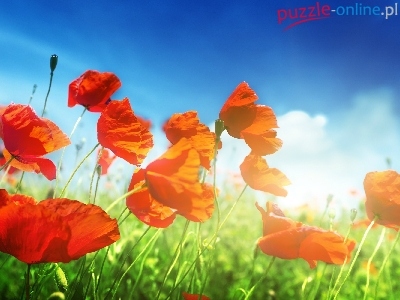 Puzzle Chmury, Maki, Łąka, Trawy