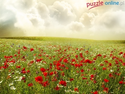 Puzzle Łąka, Chmury, Maki