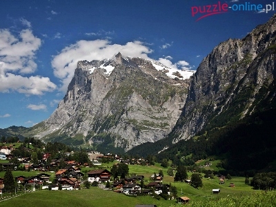 Chmury, Alpy, Grindelwald, Góry, Łąki, Wioska