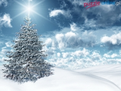 Puzzle Śnieg, Choinka, Chmury, Zima