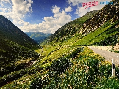 Puzzle Chmury, Góry, Droga, Trawa