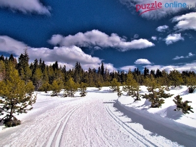 Puzzle Chmury, Las, Droga, Zima