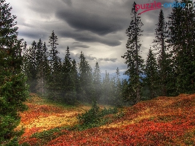 Puzzle Chmury, Góry, Drzewa, Jesień