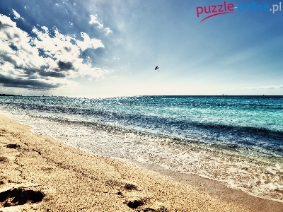 Puzzle Chmury, Morze, Fale, Plaża