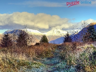 Puzzle Ścieżka, Góry, Chmury, Rośliny