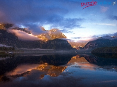 Puzzle Góry, Chmury, Jezioro