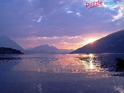 Chmury, Słońca, Jezioro, Góry, Zachód