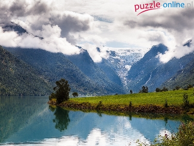 Puzzle Chmury, Rzeka, Góry, Łąki