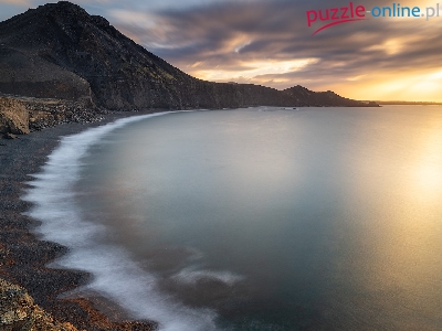 Puzzle Góry, Morze, Wybrzeże, Chmury