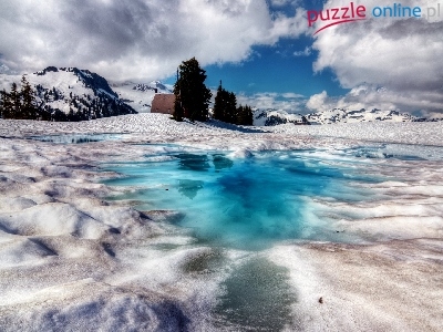 Puzzle Chmury, Zamarznięte, Jeziora, Zima