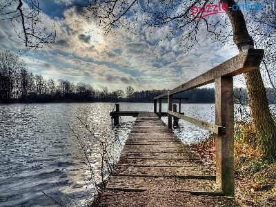 Puzzle Jezioro, Chmury, Pomost