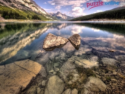 Puzzle Chmury, Jezioro, Kamienie, Góry