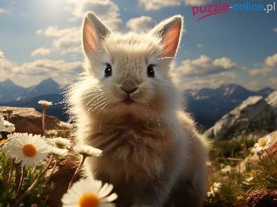 Góry, Lato, Kamienie, Chmury, Kwiaty, Królik, Niebo
