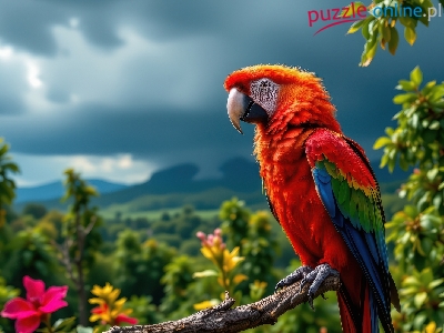 Ciemne, Ptak, Konar, Grafika AI, Ara, Papuga, Chmury
