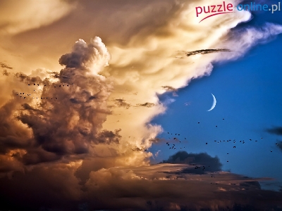 Puzzle Księżyc, Chmury, Ptaki