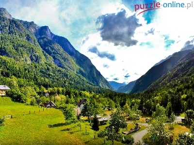 Puzzle Chmury, Góry, Lasy, Domy