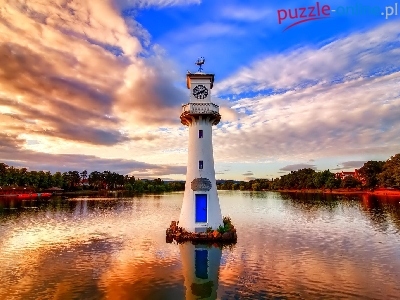 Puzzle Chmury, Latarnia Morska, Lasy, Woda