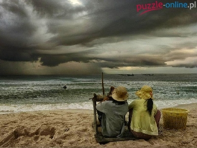 Puzzle Chmury, Dzieci, Morze, Plaża