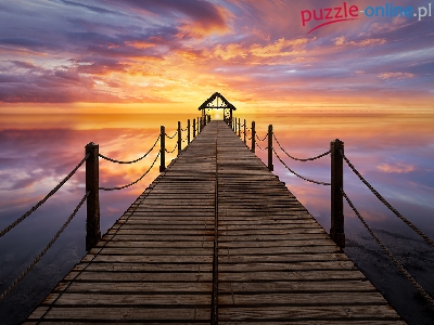 Puzzle Molo, Chmury, Morze, Zachód słońca
