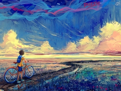 Chmury, Rower, Grafika, Dziecko, Niebo, Rower