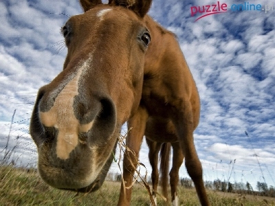 Puzzle Chmury, Koń, Niebo, Trawa