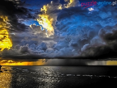 Chmury, Światło, Morze, Niebo, Przebijające