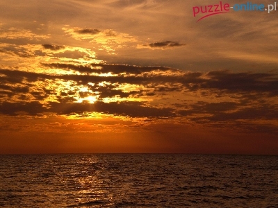 Puzzle Chmury, Zachód Słońca, Niebo, Morze