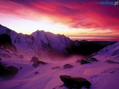 Chmury, Gór, Słońca, Szczyty, Śnieg, Zachód