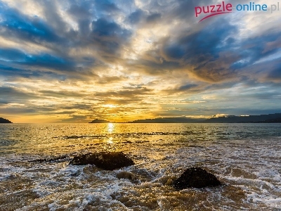 Galicja, Morze, Chmury, Plaża Playa de Coira, Hiszpania, Portosin, Wschód słońca