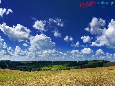 Puzzle Chmury, Farmy, Pola, Panorama