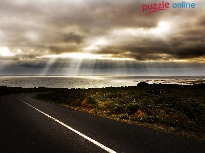Puzzle Chmury, Droga, Jezioro, Promienie Słońca