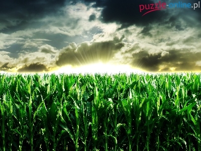 Puzzle Chmury, Pole, Kukurydzy, Promienie Słońca