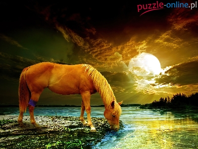 Puzzle Chmury, Konik, Rzeka, Księżyc