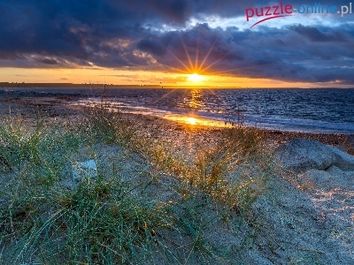 Puzzle Chmury, Morze, Wschód słońca, Kamienie