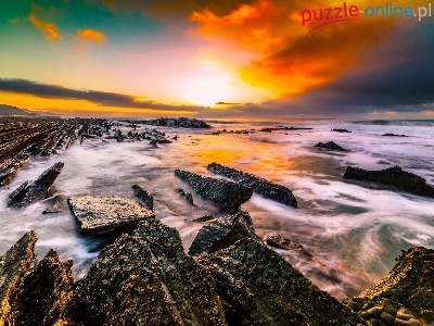 Puzzle Chmury, Morze, Wschód słońca, Kamienie