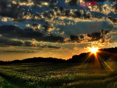 Puzzle Chmury, Zachód, Słońca, Łąka
