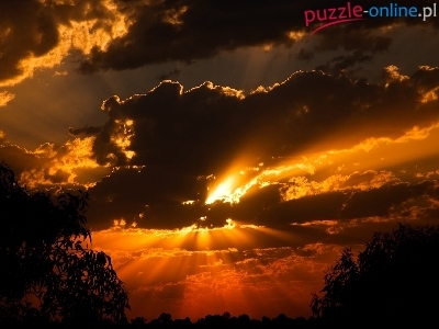 Puzzle Chmury, Zachód, Słońca, Drzewa