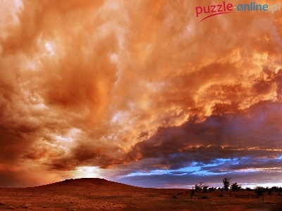 Puzzle Chmury, Zachód, Słońca, Drzewa