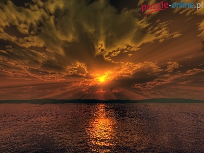 Puzzle Chmury, Zachód, Słońca, Jezioro