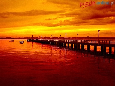 Chmury, Mostek, Zachód, Słońca, Morzre