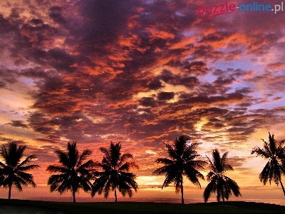 Puzzle Chmury, Zachód, Słońca, Palmy