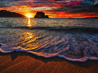 Chmury, Plaża, Zachód, Słońca, Morze