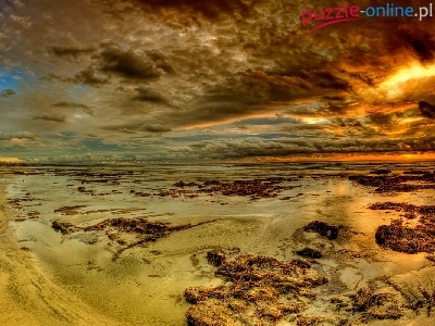 Puzzle Chmury, Zachód Słońca, Plaża