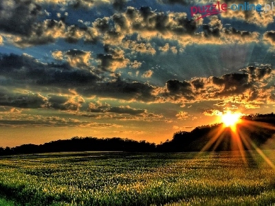 Puzzle Chmury, Zachód, Słońca, Pola