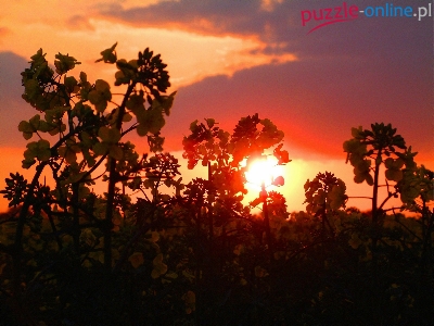 Puzzle Chmury, Zachód, Słońca, Rośliny
