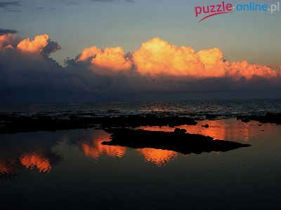 Puzzle Chmury, Zachód Słońca, Woda, Odbicie